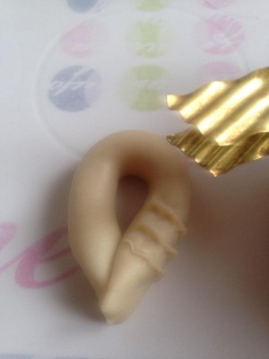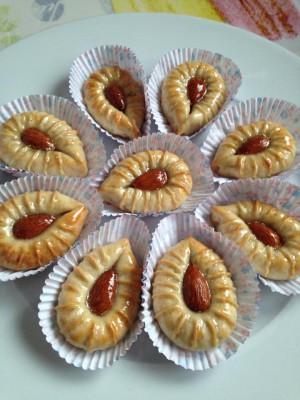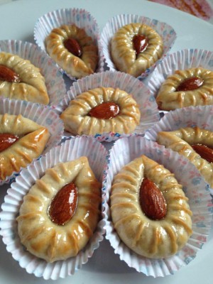 L'oeil du chameau , en voici un drôle de nom pour une pâtisserie !!! Et c'est pourtant le nom de cette douceur aux amandes qui a la forme d'un oeil de chameau ! J'ai récemment vu fleurir un peu partout une nouvelle technique pour la réaliser facilement en disposant le boudin obtenu sur un peigne afin que les rainures marquent le gâteau mais j'ai oublié d'acheter un peigne à cet effet , j'ai donc utilisé la bonne vieille méthode avec la pince nakache .