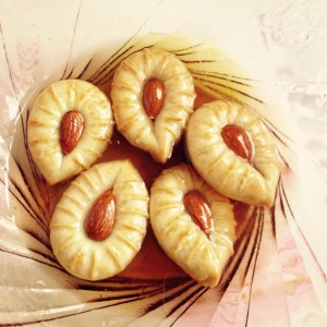 Enfourner les ain jmel jusqu'à une belle coloration dorée et les tremper dans le miel à la sortie du four . Egoutter sur une grille et présenter dans des caissettes .