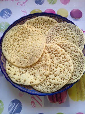 Je vous présente les fameuses crèpes orientales appelées baghir ou crèpes à 1000 trous car elles ont la particularité d'être recouvertes de petits trous dus à l'effet de la levure boulangère . Idéale pour accompagner un bon thé, il se déguste traditionnellement avec un sirop au miel. Laissez vous envoûter par ses merveilles orientales .