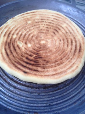 Chauffer un tajine spécial matlouh ou une poêle à fond épais et y disposer le 1er pain . Le piquer un peu partout avec un cure dents afin d'avoir une bonne cuisson à l'intérieur . Laisser cuire environ 3/4 mn en le faisant tourner sur lui même de temps en temps , vérifier la cuisson en le soulevant puis cuire l'autre côté de la même façon . Cuire les bords en le relevant et en le faisant rouler dans le tajine .