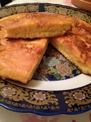 Bonjour à tous , je vous propose une recette kabyle que les femmes préparent souvent pour les femmes venant de donner naissance mais que l'on peut préparer aussi pour accompagner un bon thé . C'est une sorte d'omelette sucrée , arrosée de miel moelleuse et délicieuse .