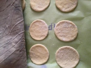 Préparer la pâte à batbout : melanger la farine et la semoule , ajouter la levure et le sel en évitant de les mettre en contact. Verser l eau et pétrir environ 10mn. La pâte doit être très molle, un peu collante. Saupoudrer le plan de travail de farine et étaler la pâte sur 0,5 cm d épaisseur . A l' emporte pièce ou à l' aide d un verre , couper des ronds de pâtes. Les placer sur une plaque recouverte de papier sulfurisé , couvrir d' un linge propre et laisser gonfler 1h.