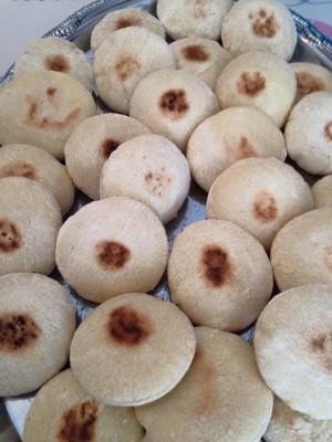 Faire chauffer une poêle anti-adhésive et faire cuire vos batbouts sans les dégazer . Ils vont gonfler un peu pendant la cuisson. Faire cuire 3/4 mn de chaques cotés . Laisser refroidir .