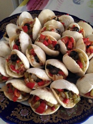 Voici de délicieux petits pains farcis de poivrons grillés , olives noires et d'oeufs durs qui plairont à toute la famille .