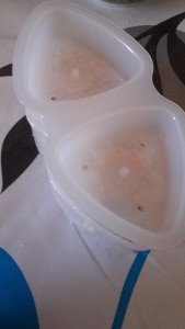 Prendre le moule à onigiri triangle, verser le riz au saumon dedans jusqu'en haut, il faut bien le remplir, fermer avec le couvercle en pressant bien pour que le riz se tasse.