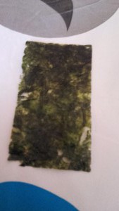 Prendre les feuilles de nori prédécoupées ou les découper soi-même (10cm de long sur 6 de large environ). Poser un 1er onigiri debout au centre d'une bandelette de feuille de nori et remonter les côtés qui vont adhérer tout seul au riz. Faire la même choses pour les autres.