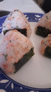 Pour ceux et celles qui n'ont pas de moule, préparer un bol d'eau. Mouiller ses mains, prendre la valeur de 2 cuillères à soupe bombées de riz au saumon et façonner le triangle entre les paumes de la main, c'est trés facile.