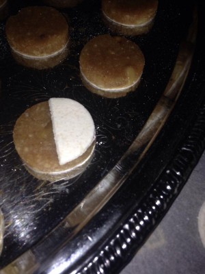 Etaler les pâtes blanches et vertes restante sur 2mm et couper des ronds de la même façon que précédemment et les couper en 2 . Placer , sur les ronds déjà formés avec la pâte d'amande et la farce , un demi rond vert et un demi rond de manière à faire la base du drapeau de l'algérie . Puis avec la pâte rouge , façonner des étoiles et des croissants de lune , soit à l'emporte pièce soit comme moi avec un couteau et d'un verre ( il faut de la patience !!) puis les coller avec un pinceau et du blanc d'oeuf comme sur le drapeau algérien . Bonne réalisation !